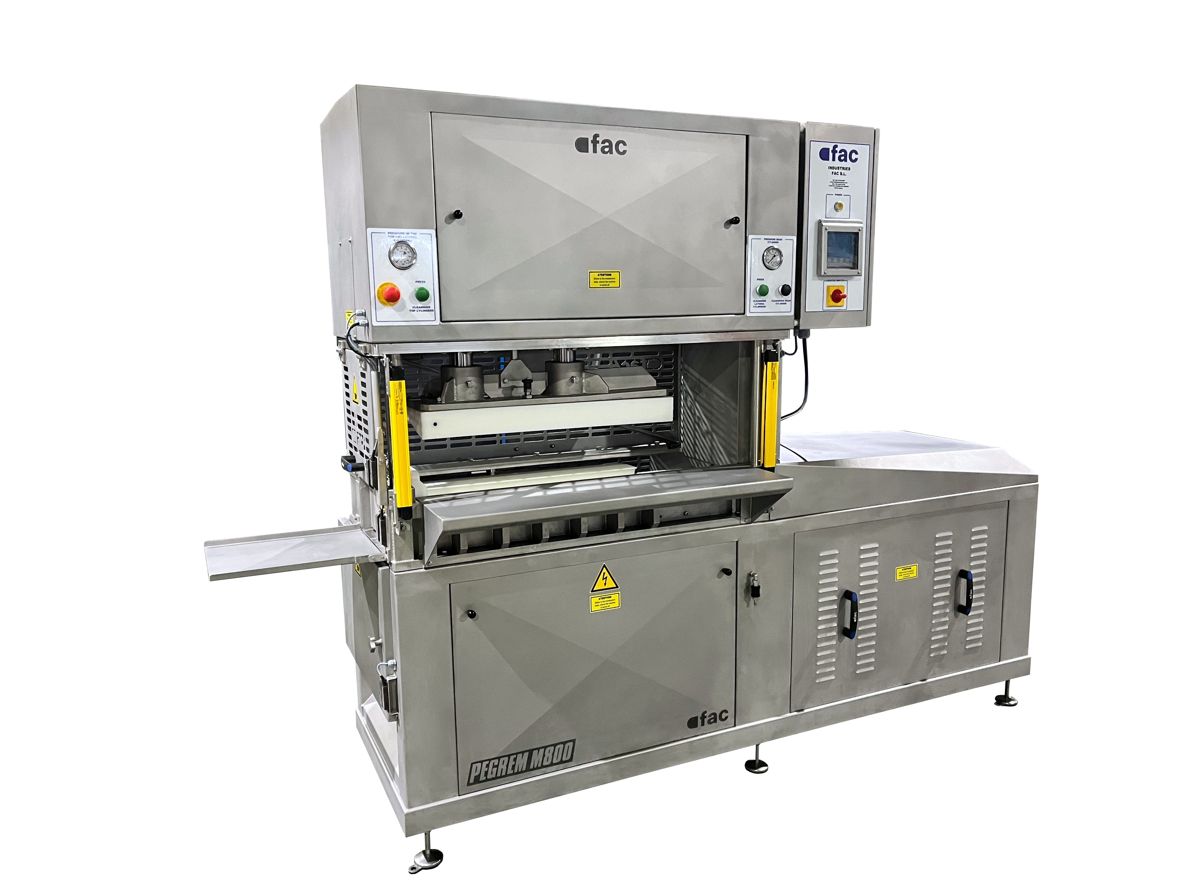 Equipped with a powerful hydraulic unit, this machine allows products to be pressed using a 3D system, thus ensuring a uniform shape. Once the product has been shaped, it guarantees regularity from the beginning to the end of the slicing process, obtaining optimal performance.